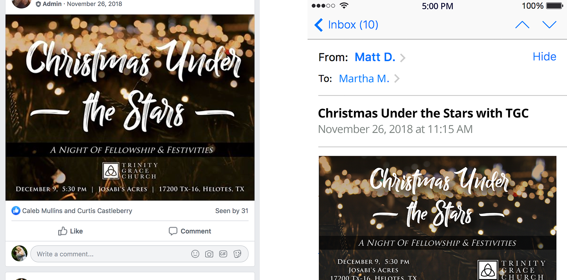 As word of my services continued to spread, another Church plant hired me to create campaign graphics for a Christmas party. From large format posters to social media and email assets.