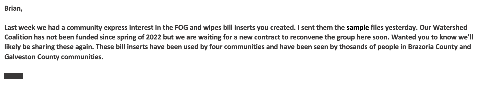 A potentially large re-order of water bill inserts for two Texas counties.