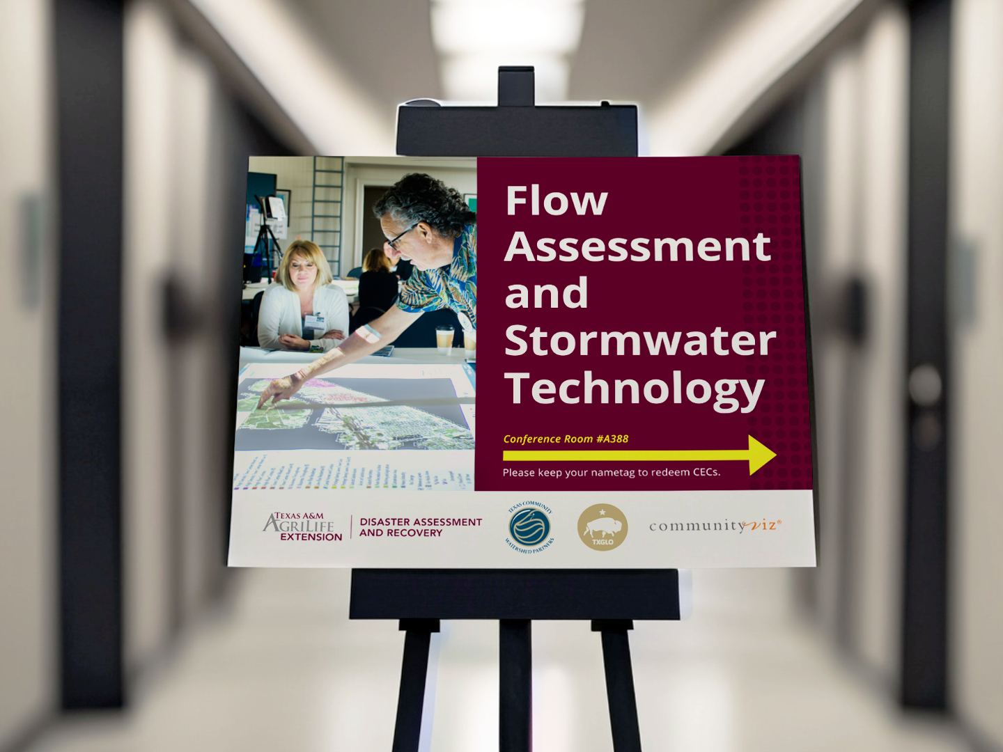 We showcased our newly-acquired CommuntiyViz® mapping application at the 2023 Gulf of Mexico Alliance All Hands Meeting. Where we educated attendees about our ESRI software extension for urban analytics, how to run a data-driven map model, and insight into the future of the ownership by Texas A&M AgriLife Extension. I led design strategy sessions and orders for numerous swag, brochures, and exhibition items, including a backdrop banner with images of our workshops to be projected.